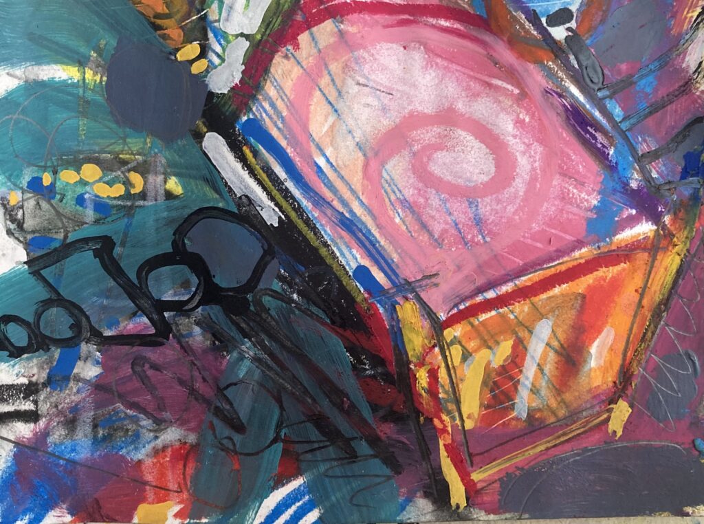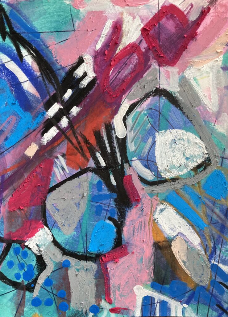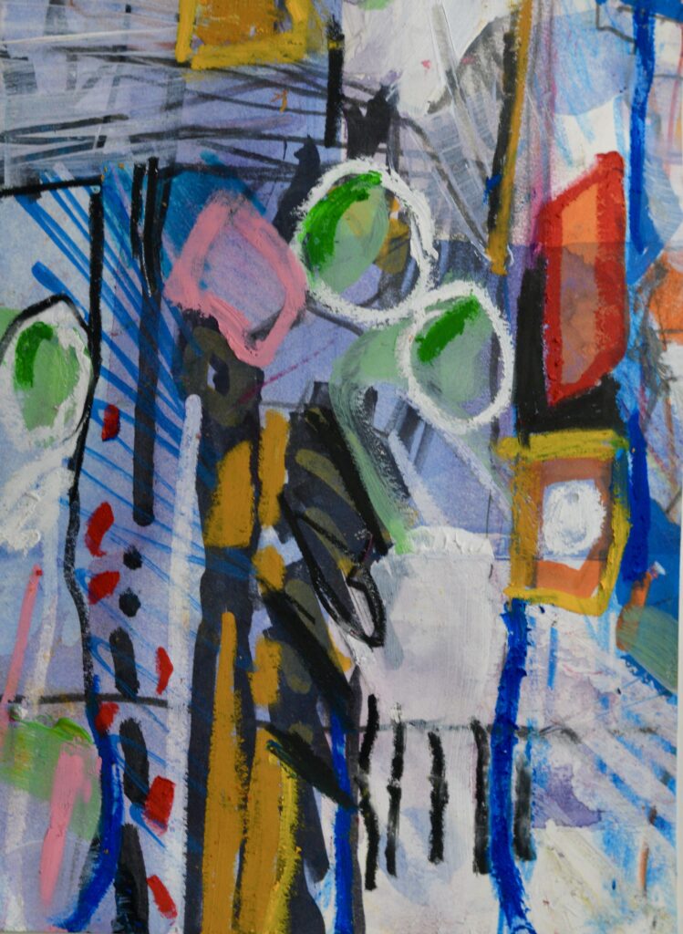Mumbo Jumbo. Mixed media on paper. This is one of a new series of 6 small paintings loosely based on one of my larger canvases. Part of my daily art routine.