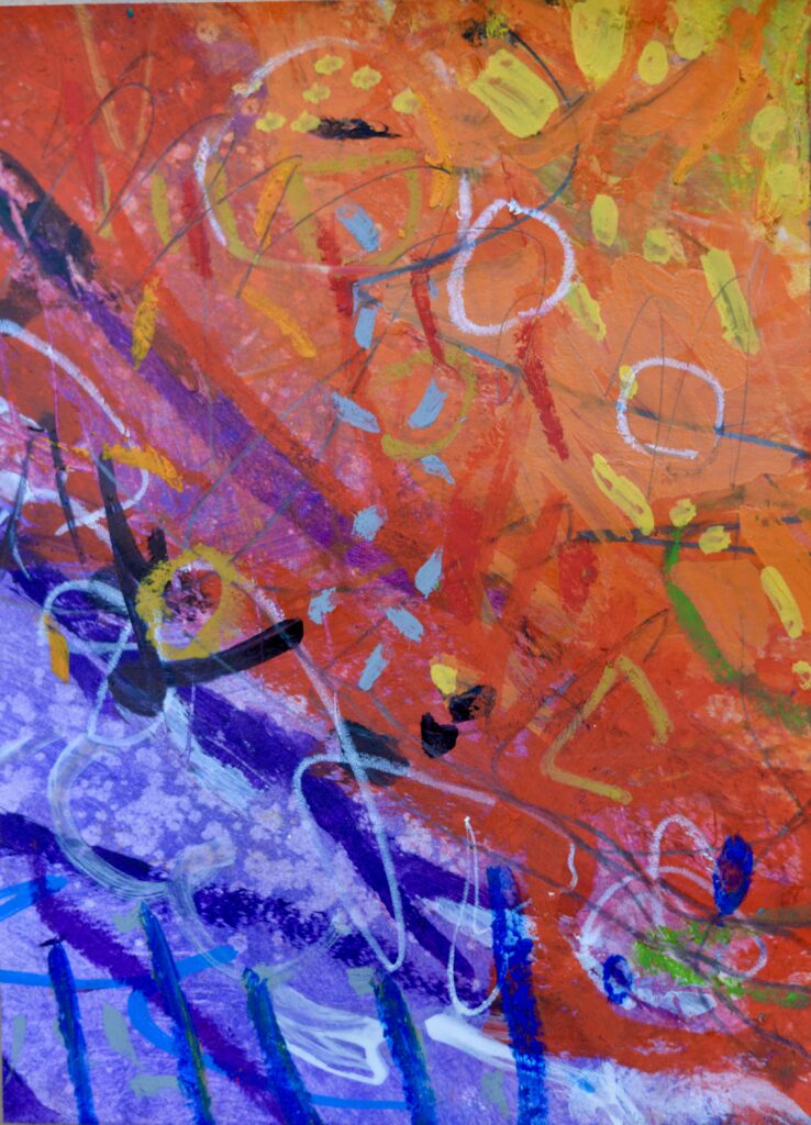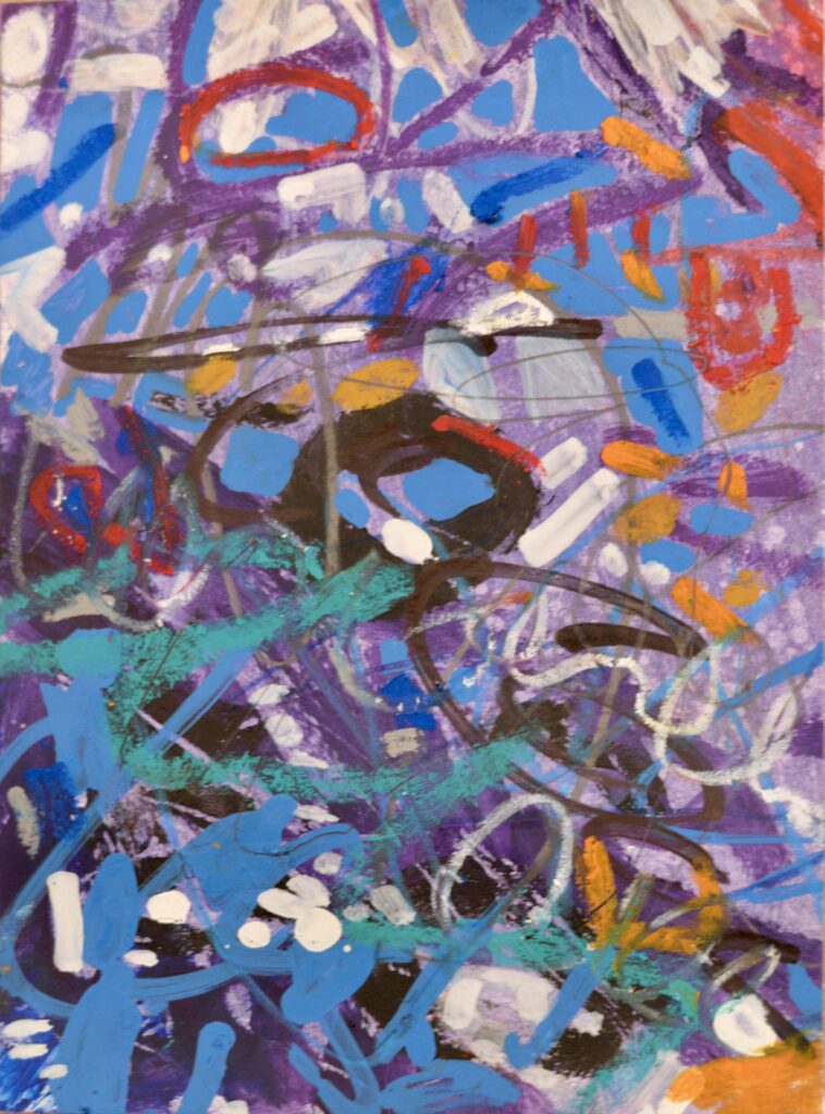Like I do with my canvases, I look at them, not to edit, but to see what is there. Not every section works in this state, but some stand out as little gems. Often, I see the events of recent days, or distant memories that floated up from the recesses of my mind. They found their way down my right arm, and out onto the substrate.