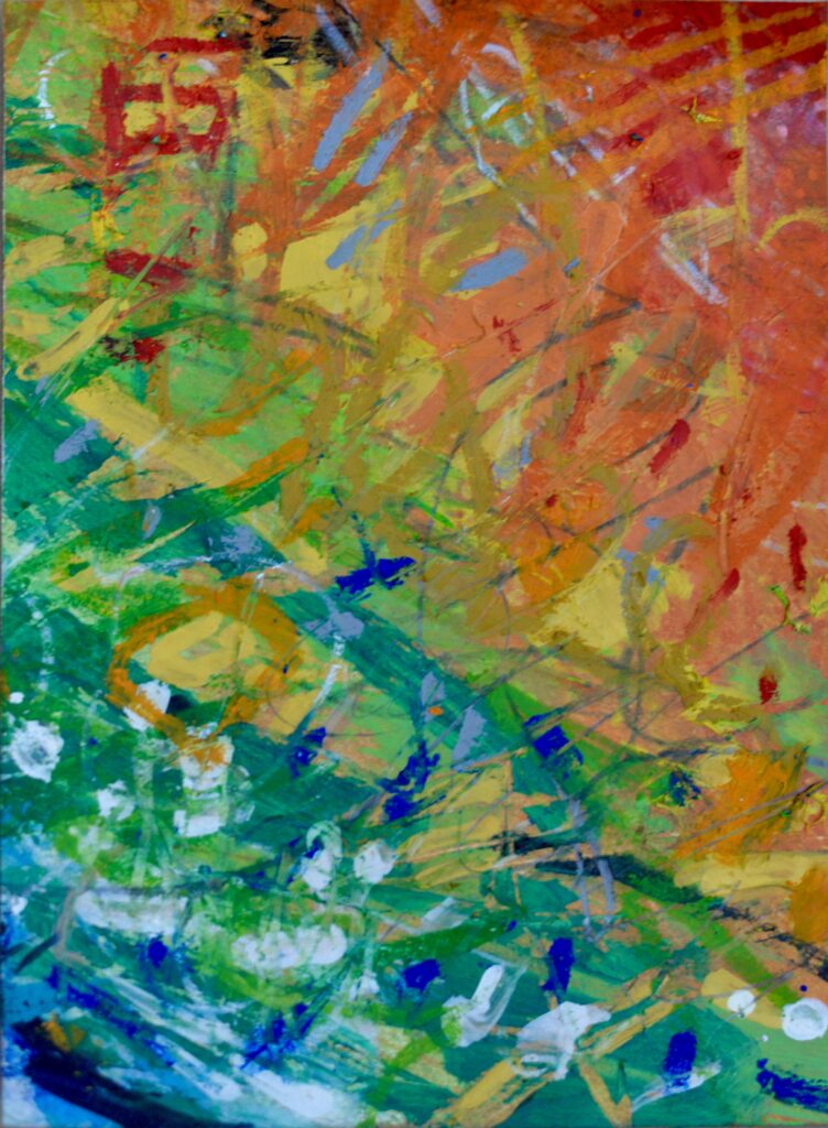 Summer. Mixed media on paper. This is one of a new series of 6 small paintings loosely based on one of my larger canvases. Part of my daily art routine.